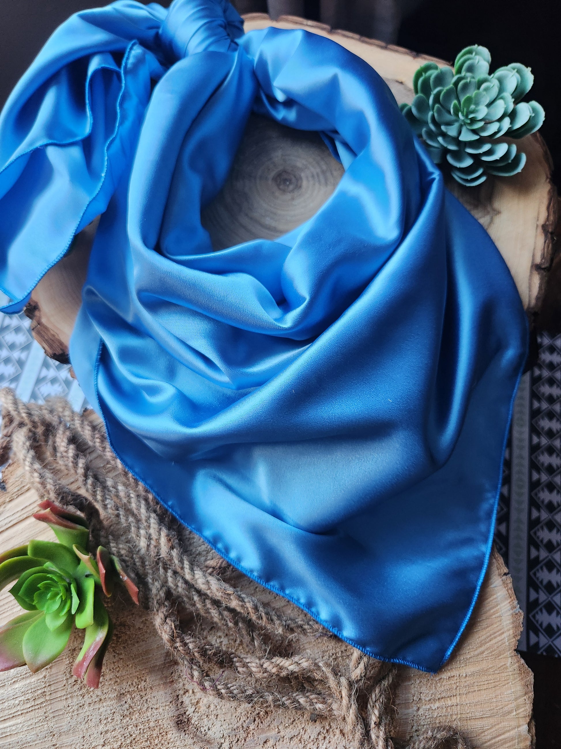This is a light satin with beautiful drape. 40" square satin wildrag.